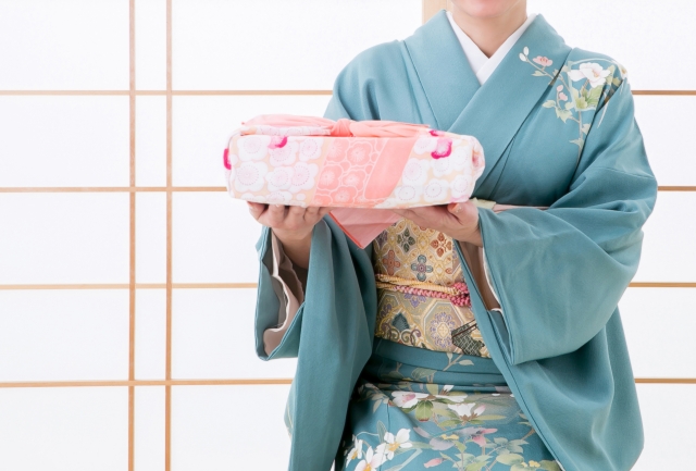 結納品は、必ず「風呂敷」に包むのがマナーです。紙袋やビニール袋に入れて持ち運ばないようにしましょう。また結納品を包む風呂敷には、「結び目」を作らないのがポイント。これは結び目をほどくという行為が、縁起が悪いとされているからです。風呂敷は結び目を作らない、慶事用の「平包み」という方法で包みましょう。