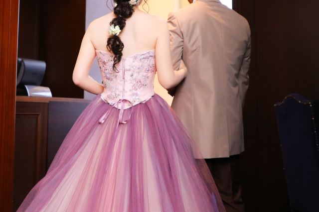 カラードレスもウェディングドレスと同じように購入することは可能ですが、その後着る機会はなかなかないかもしれません。例えば演奏会や表彰式のように着る場面がある方は購入するのもいいかもしれません。しかし、カラードレスは着る機会があったとしても別のものを選んで着たいなどもあると思いますので、購入する人は多くはありません。ゲストとして結婚式に参列する時にカラードレスを着るのは華やかすぎるため、デザインにもよりますが遠慮した方が無難でしょう。カラードレスを購入したい場合には、サンプルが店舗になかったり少なかったりすることがあるので、ショップに足を運ぶ前に希望を伝え、リクエストをしておいた方が二度手間にならず試着ができるでしょう。